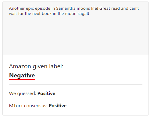 第二种是被标错的文本情感倾向,如亚马逊的商品评价本来是消极的,但被标成积极的。