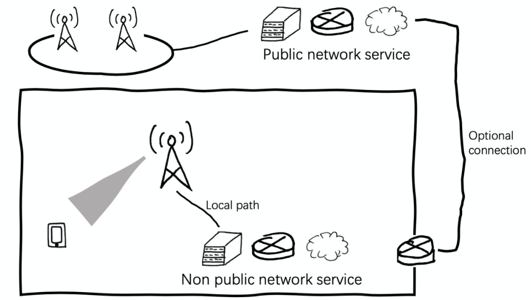 R16通过定义独立专网(SNPN,Standalone Non-Public Network),工厂可以定制从基站,核心网,到管理系统的一整套方案,自成体系,并独立于运营商公众网络。专网通过分配NPN ID给NPN网络,RAN(Radio Access Network,无线接入网)广播PLMN(Public Land Mobile Network,公共陆地移动网)+ NPN ID。基于NPN ID,可以进行小区、网络选择和接入控制,并通过网关以非3GPP方式和公众网互通,使得园区内的网络性能可控,并与外部网络硬隔离。