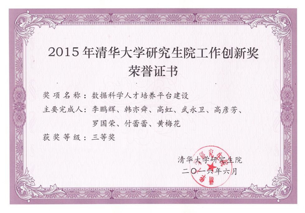 数据科学人才培养平台建设获得2015年度清华大学研究生院工作创新奖