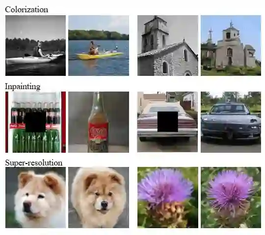 这种在观察空间重建的策略在DIP等工作中就已经被应用。它有个前提条件是对应的退化变换 已知且可导,好在上色,补全,超分辨率这些任务所对应的退化变换(灰度化,裁剪,降采样)都满足该要求。
