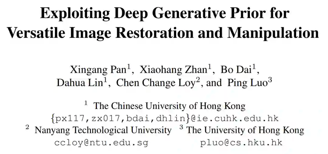 [1] Pan, Xingang, et al. "Exploiting Deep Generative Prior for Versatile Image Restoration and Manipulation." ECCV2020.