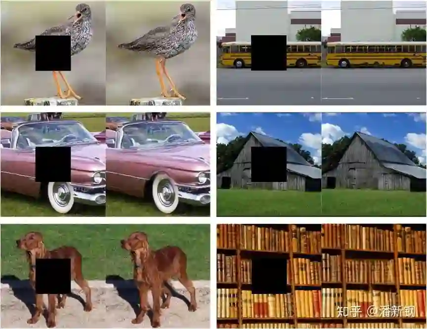 我们称上述方法为深度生成式先验deep generative prior (DGP),并运用到多种图像复原任务中,文章开头的动画展示了复原过程。这里展示更多结果:(注:这些是在ImageNet validation集上的结果,GAN在预训练时并没见过这些图片。)