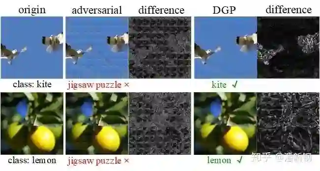 DGP还可以用于对抗防御,由于attacker加上的攻击噪声不符合自然的图像分布,用DGP可以将这种非自然噪声消除: