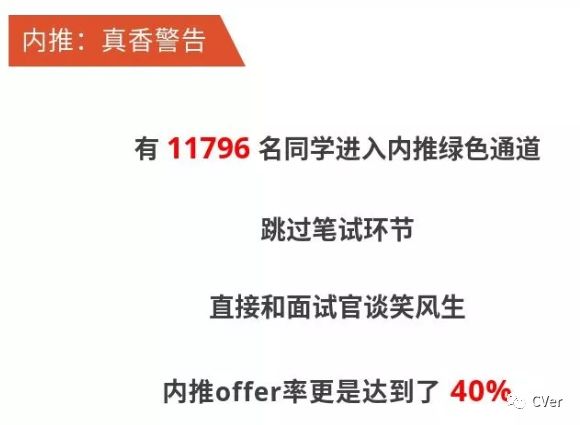 4.内推。有近12000名同学进入内推绿色通道。官方申称内推Offer率近40%,那么光内推就发了近4800个岗位的Offer。(这里推论的岗位数量有待考究,我个人认为信息有很大误差)