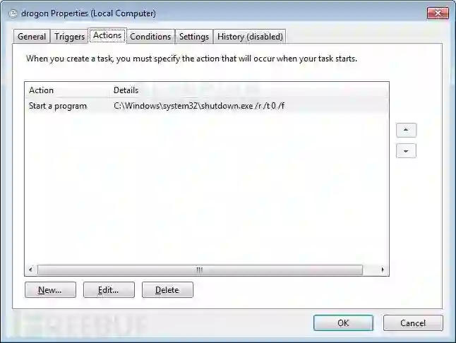 最后,Bad Rabbit 还会创建两个新 task 来重启计算机。这些 task也是用《权力的游戏》中的角色命名的——drogon 和 viserion。这些 task 用于关闭并重启计算机,这样就可以在用户登录时执行其他程序,或是 Windows 启动之前锁定屏幕。