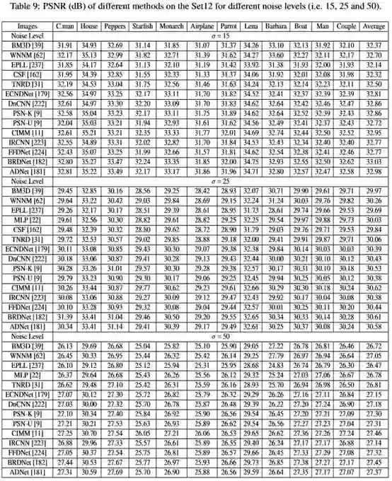 图像去噪技术在20世纪90年代已经成为研究热点。例如:用非局部相似性来优化稀疏方法能提高去噪的性能。字典学习有助于快速移除噪声。先验知识通过平滑噪声图像来恢复潜在干净图像的细节。更多竞争去噪方法包括MRF 、WNNM 、LSSC、CSF 、TNRD和GHEP能被利用。