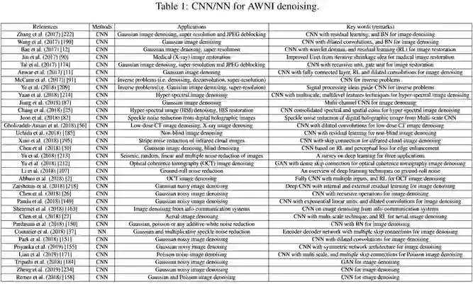 2.1.3 The combination of optimization method and CNN/NN for AWNI denoising: