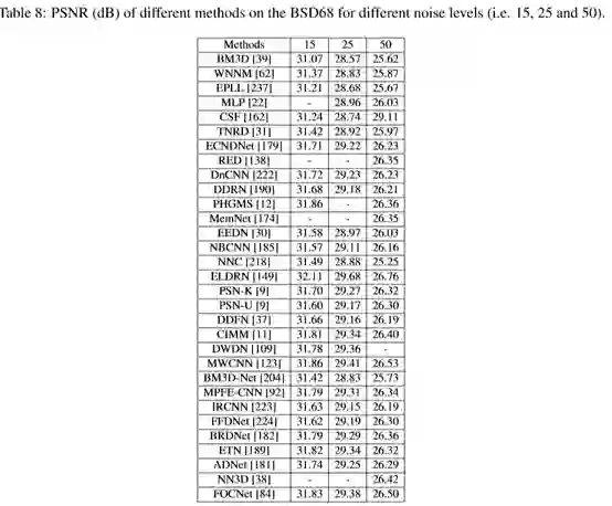 3.2 Deep learning techniques for additive white noisy-image denoising结果