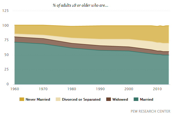 美国18岁及以上人群的婚姻状况