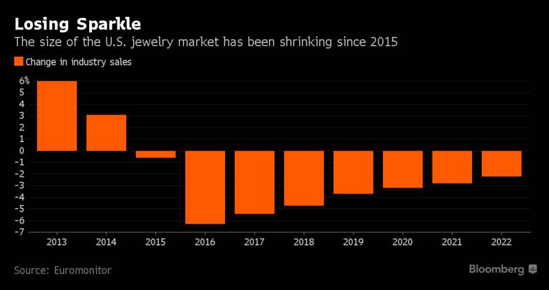 2015年以来,美国珠宝市场的规模持续萎缩
