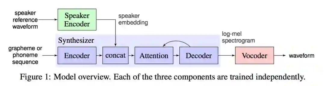 这篇名为「从声纹识别到多重声线语音合成的迁移学习」的论文中的系统由三个模块组成,分别是: