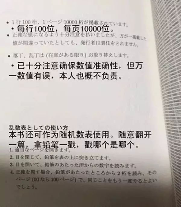也许我你会觉得,这本书简直无聊至极,但是,你不可否认,这本书作为随机数表的用处,你随便翻开一页,然后拿铅笔随便一戳,戳到哪个数字就是哪个数字,简直随机到不能再随机了!