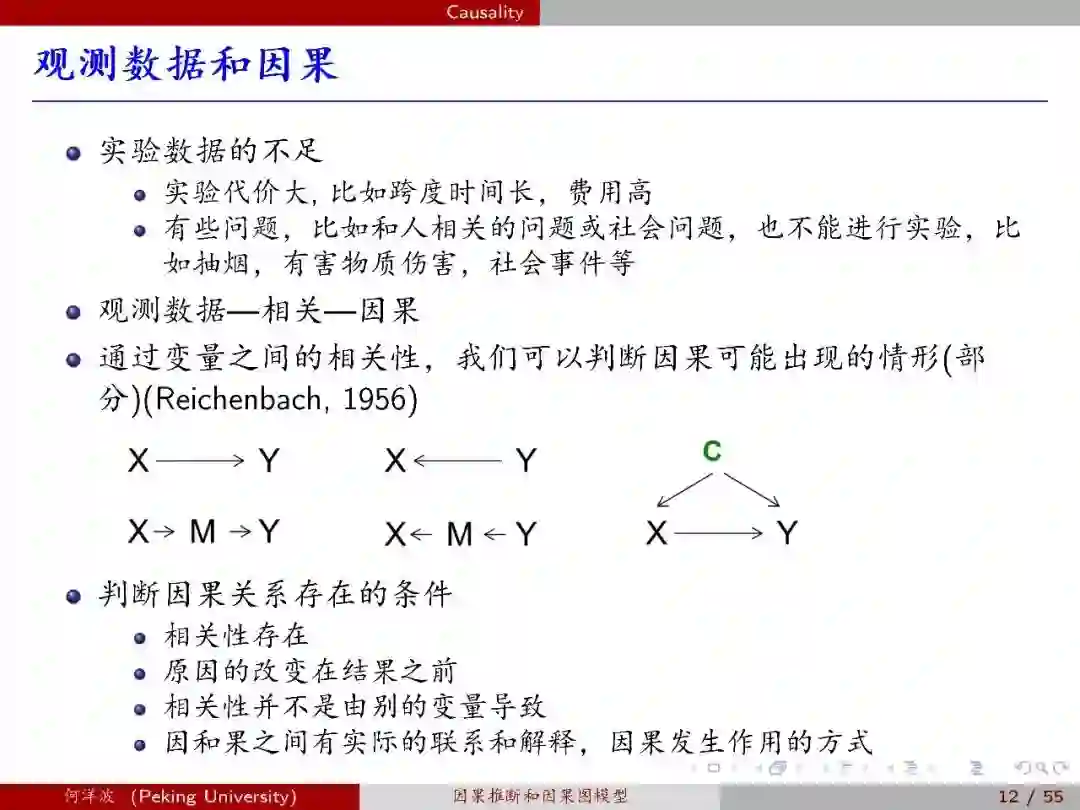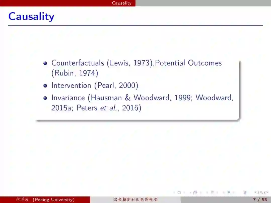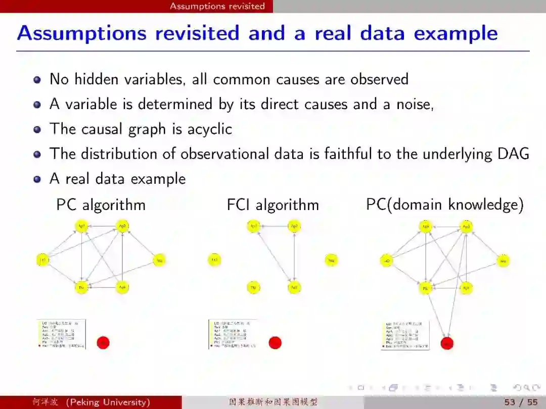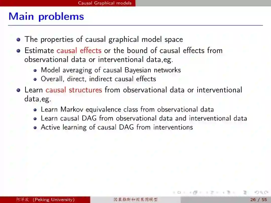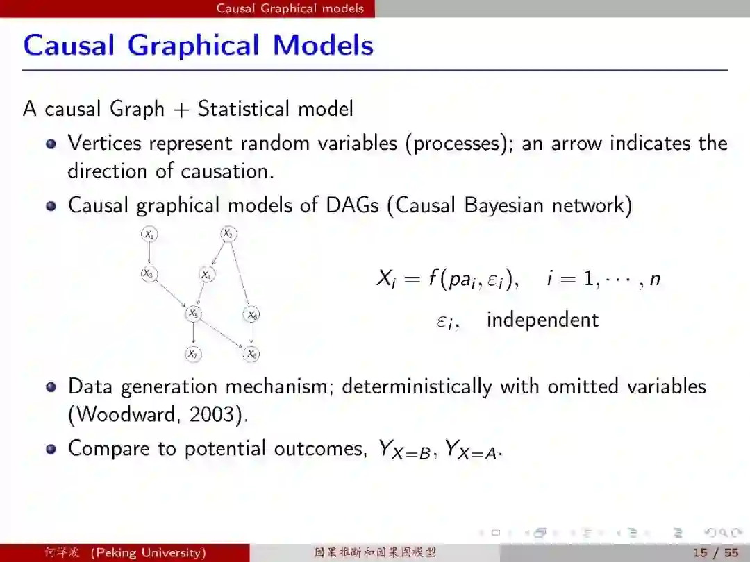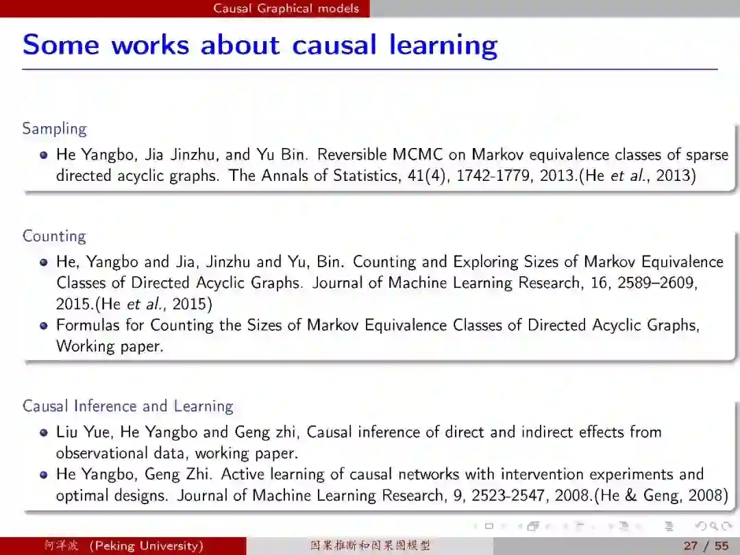 发现因果规律是人们进行科学研究的主要动力之一。因果推断探讨利用数据确定因果关系、度量因果效应的方法。近年来,包括哲学、统计学、计算机科学、社会学、 医学和公共卫生等领域的研究者对因果及其推断方法进行了广泛的探讨和研究。因果图模型提供了一种用概率图进行因果推断的框架。因为其能直观表示因果知识,有效地对因果效应进行的概率推断,使得相关方法成为统计学、机器学习、生物信息等领域的一个研究热点。然而,利用数据,特别是观察数据进行因果的学习和推断的方法还不完善,大多基于实际数据的因果分析很难得到理想的效果。本报告将介绍和分析因果推断和基于图模型的因果推断的发展现状,报告作者在相关领域的一些研究。