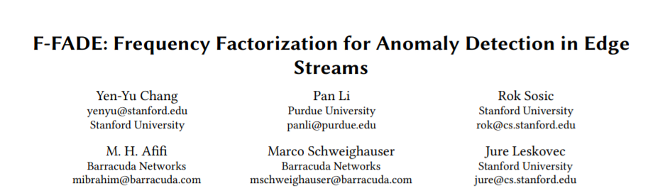 边缘流通常用于捕获动态网络中的交互,如电子邮件、社交或计算机网络。边缘流异常或罕见事件的检测问题有着广泛的应用。然而,由于缺乏标签,交互的高度动态特性,以及网络中时间和结构变化的纠缠,它提出了许多挑战。目前的方法在解决上述挑战和有效处理大量交互方面能力有限。在此,我们提出了一种检测边缘流异常的新方法- F-FADE,它使用一种新的频率因子分解技术来有效地模拟节点对间相互作用频率的时间演化分布。然后,根据观测到的每一次相互作用频率的可能性来确定异常。F-FADE能够在在线流媒体设置中处理时间和结构变化的各种异常,而只需要恒定的内存。我们在一个合成和六个真实世界动态网络上的实验表明,F-FADE达到了最先进的性能,可以检测出以前的方法无法发现的异常。