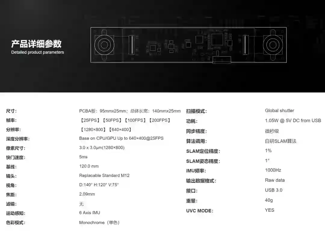 除此之外,200帧高速数据采集也意味着双目惯性相机采集能力的巨大提升,单位时间内可采集几倍于常规传感器的数据,为环境感知、三维识别、深度解算、三维建图等应用提供更高、更丰富的图像数据支持,辅助开发者实现诸如快速紧急避障、高速导航定位等功能。