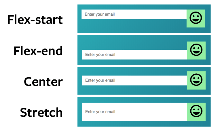 如果项目很多,一个个地设置align-self属性就很麻烦。这时,可以在容器元素(本例为表单)设置align-items属性,它的值被所有子项目的align-self属性继承。