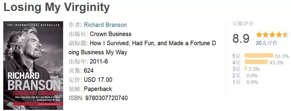 理查德布兰森的自传。维珍集团的创始人是一个非常有趣的人物,有着很好的性格。布兰森的其他作品也很受其粉丝的青睐,因为他在所有作品中都留下了属于自己的风格特色。