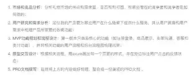在讲述自己作品的过程中,可以让面试官知道,这个作品并不是随便在网上套用模板做出来的,而是利用产品经理的思维和工作流程,去思考如何将这款产品从0到1打造出来的: