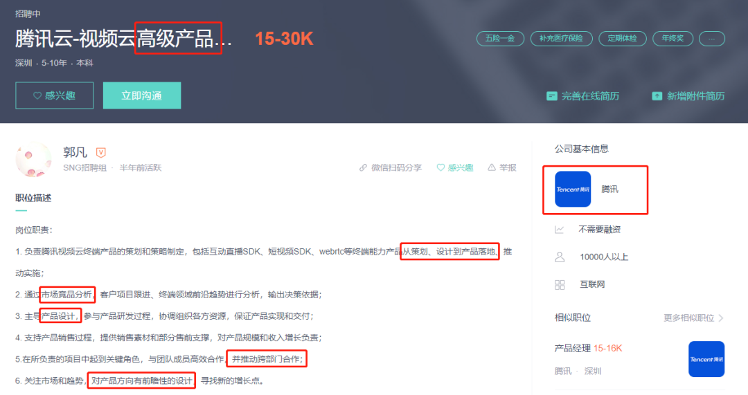 腾讯、百度公司已经放出来不少产品经理岗位,对想进互联网行业的人来说是一个不错的机会,毕竟平均薪资22.5K的产品岗还是很让人心动的。