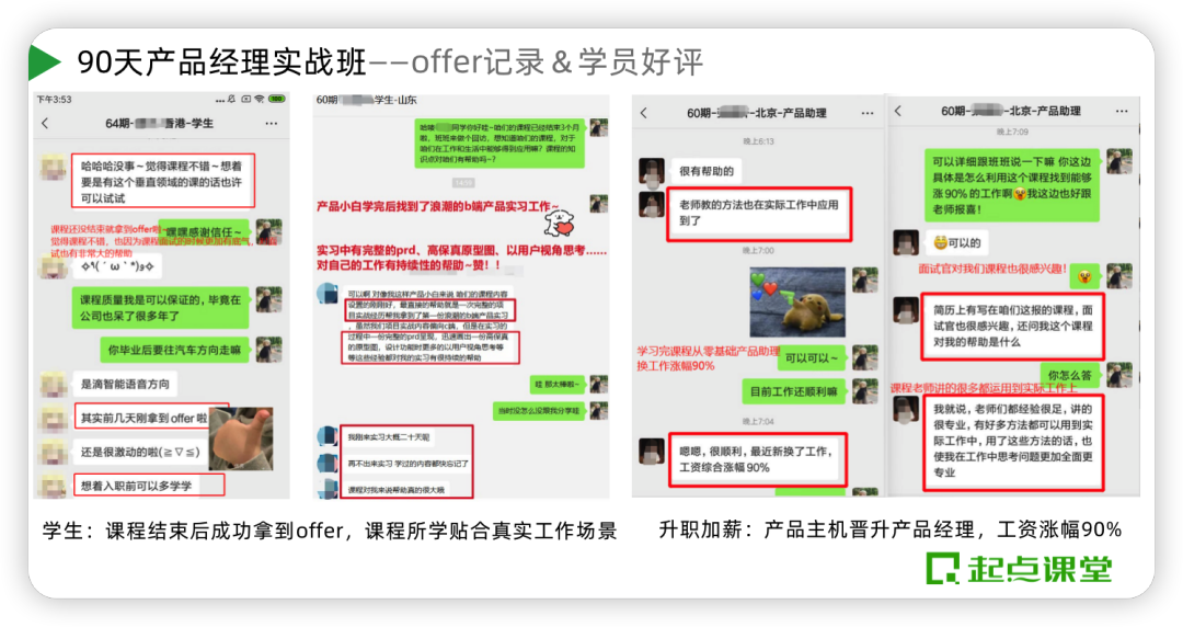 经过3个月的系统学习与实战输出,同学们除了收获体系化的产品知识,更为自己打造一份完整而规范的产品作品集,积累了有竞争力的产品项目实战,这些都能极大地帮助同学们提升求职就业的竞争力。