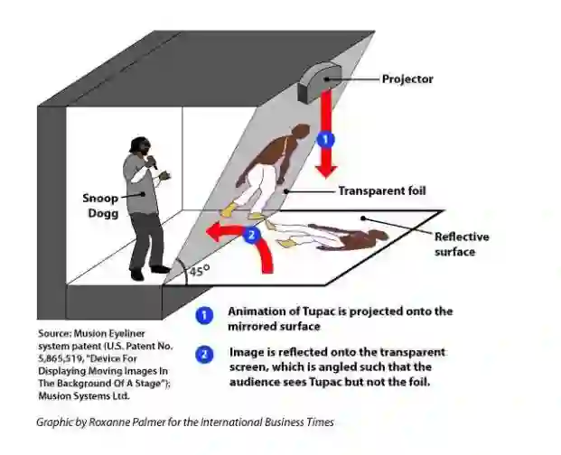 在演唱会上的黑科技——全息投影中我们曾经介绍了一种叫做Pepper's Ghost的技术,用45°半透明材料投影显示屏内容,制造出类似3D效果的“伪全息”。