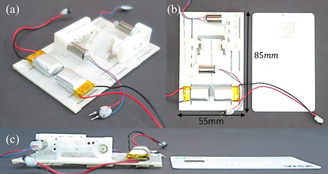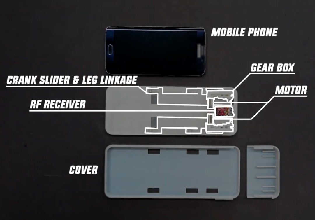 带有机械腿能够自行前进的微型机器人其实并不罕见,很多团队都开发出了相应产品。但这些机器人整体结构是不规则的,无法整合进一个手机壳中。