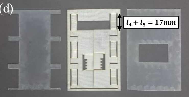 运动链由曲柄滑块和支腿链组成,用于将电机的扭矩传递给各向异性的支腿。曲柄滑块和可展开的脚链由PET(0.25T)和织物组成的单层板制造。