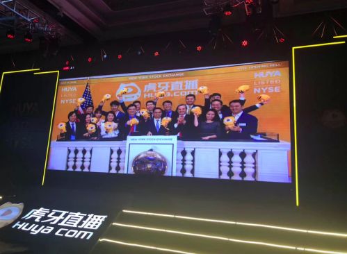 5月11日,虎牙在美国纽交所挂牌上市,发行价12美元,按照招股书中发行1500万美国存托股票(ADS)计算,虎牙将通过首次公开募股筹集1.8亿美元(约合11亿元)资金。虎牙一姐Miss、一哥骚男两位主播与虎牙一众高管参与了敲钟。