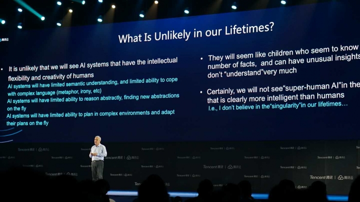 但是人工智能的发展还没有达到这一步,现在还没有建立这样完善的体系。这需要付出几十年的努力,所以我们需要一起合作,共同认真思考怎么解决这些挑战。
