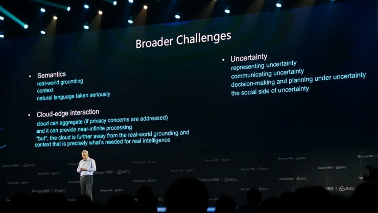 现在有一个问题是,之前我们大部分的研发都是智能机器人、掌握自然语言方面的,但是这些技术和IA以及II所需要的技术迥然不同。所以,现在我们在建立基础智能设施的的时候就会遇到很多新问题,在腾讯也是如此。