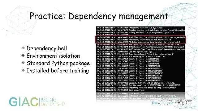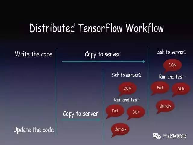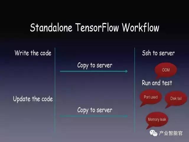 Tensorflow这个Library需要人工安装,脚本需要手动运行,环境需要手动配置。分布式的Tensorflow要把一个脚本拷贝到多台机器上,手动配置。要进行代码调优需要手动Run和Tune。