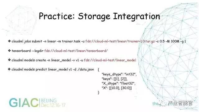 我们对存储系统做了集成。开源的Tensorflow目前只支持本地存储,因为我们在云端训练,任务由我们调度到特定的机器,用户不可能直接把训练数据放到本地。