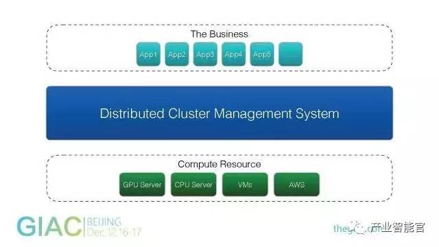 我们在中间引入一个分布式的管理系统,让上层业务应用不需要直接管理底层资源,由统一的调度系统去实现。