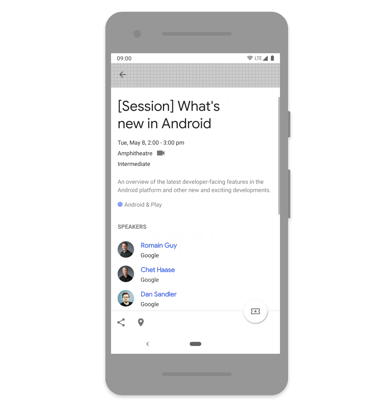 在为 Google I/O 2018 Android 团队工作期间,我们的主要作品之一就是这个官方的应用,允许与会者和远程人员了解会议细节,建立个性化的时间表,并在会场预订座位。我们在应用中构建了许多有趣的动效,而且我们也开源了这个应用的代码,下面我想强调一些这些设计实例,以及一些有趣的实现细节,希望能给大家日常的动效设计带来灵感。