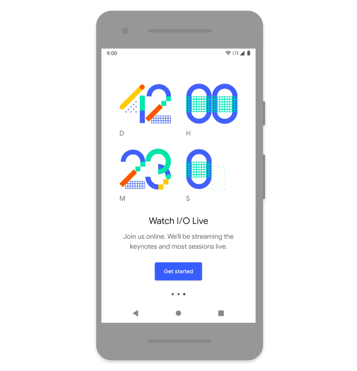 可以这么说,Google I/O 官方应用的其中一部分作用就是为会议带来兴奋感和期待感。因此,我们在首屏幕和信息页面都显示了大型的倒计时动画。这也是将大会的活动品牌视觉进行呈现的绝佳机会,为应用增添了很多特色。