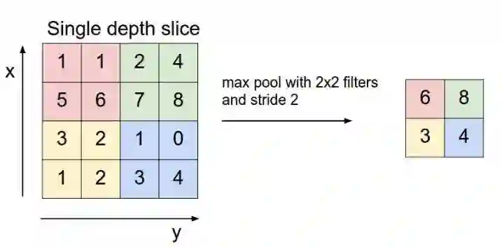 让我们以最大池化为例。在这种情况下,我们定义了一个空间窗口(spatial window),并从其中的特征映射获取最大元素,现在记住图 2(卷积是如何工作的)。直观来讲带有更大步长的卷积层可作为子采样和下采样层,从而使输入表征更小更可控。同样它也可减少网络中的参数数量和计算,进而控制过拟合的发生。