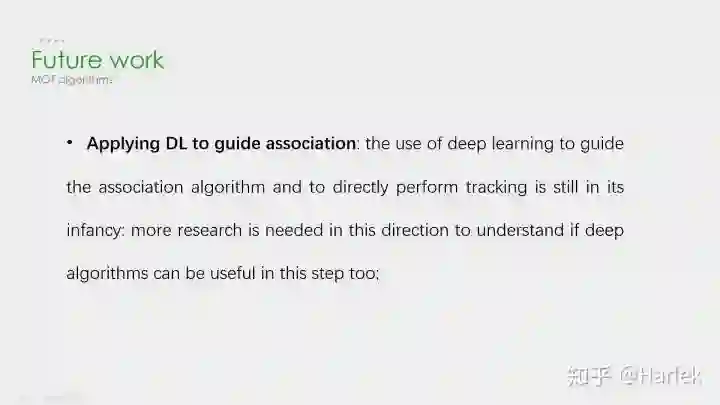 最核心的数据关联模块要用深度学习来解决是很困难的。现在有一些尝试是用RNN,但速度慢、效果不好,需要走的路都还很长。