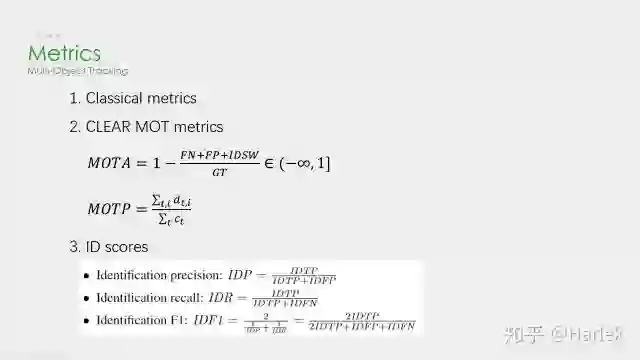 参考文献:[1] Alex Bewley, Zongyuan Ge, Lionel Ott, Fabio Ramos, and Ben Upcroft. Simple online and realtime tracking. In2016 IEEE International Conference on Image Processing (ICIP), pages 3464–3468. IEEE, 2016.[2] Nicolai Wojke, Alex Bewley, and Dietrich Paulus. Simple online and realtime tracking with a deep associationmetric. In2017 IEEE International Conference on Image Processing (ICIP), pages 3645–3649. IEEE, 2017.[3] Chen Long, Ai Haizhou, Zhuang Zijie, and Shang Chong. Real-time multiple people tracking with deeplylearned candidate selection and person re-identification. InICME, 2018.[4] Zhongdao Wang, Liang Zheng, Yixuan Liu, Shengjin Wang. Towards Real-Time Multi-Object Tracking. arXiv preprint arXiv:1909.12605[5] Gioele Ciaparrone, Francisco Luque Sánchez, Siham Tabik, Luigi Troiano, Roberto Tagliaferri, Francisco Herrera. Deep Learning in Video Multi-Object Tracking: A Survey. arXiv preprint arXiv:1907.12740 ——END——