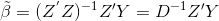 在传统的多元线性回归中,利用最小二乘(OLS)原则,回归系数的的估计值为:
