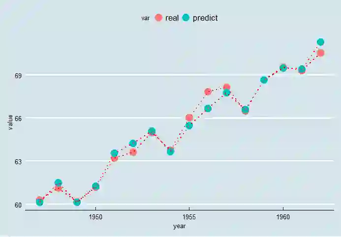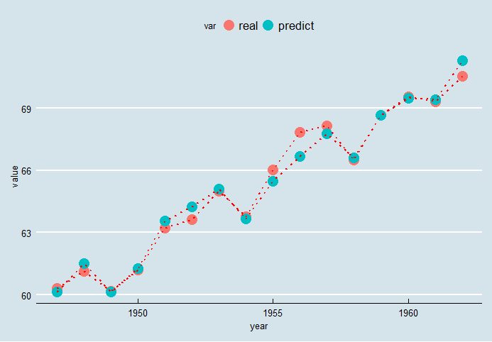 dt <- data.frame(year=longley$Year,real=data1$Employed,predict=c(pred))
