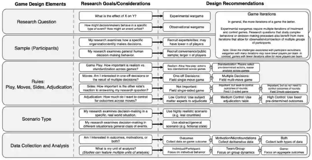 这四个命题表明,兵棋推演为研究人员提供了在现实世界数据有限的情况下进行决策的宝贵见解。至关重要的是,兵棋推演的价值不在于确定结果,而在于阐明决策者如何得出这些结果。尽管兵棋推演本质上是对现实的模拟,但我们相信其身临其境的性质、群体互动、后果以及精英样本的使用比其他研究方法更准确地模拟了现实世界的决策环境,从而提高了研究结果相对于其他方法的生态有效性。任何单独的游戏设计都可能会强调某些主张而削弱其他主张——例如,片面的博弈可能会牺牲一些竞争精神,同时赋予群体互动特权——但兵棋推演保留了每个命题的一些价值。在接下来的部分中,我们将绘制出学者如何使用原始兵棋推演和使用档案兵棋推演数据进行研究,并确定在设计游戏和分析游戏数据时如何驾驭这四个命题。