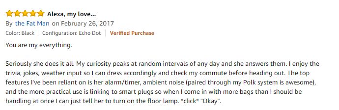 通过电子邮件、评论和社交媒体研究你的客户对你说了什么,然后把这些信息作为下一次营销活动的基础。亚马逊从 Echo 产品评论中获得灵感,为他们的营销活动制作了 14 秒的短片。