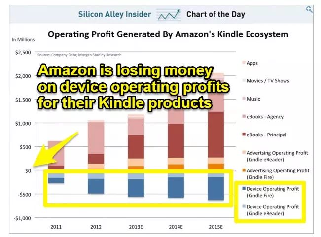 而最令人感兴趣的是,亚马逊是在亏损的情况下销售 Kindle,之后再从数字化内容中获利。