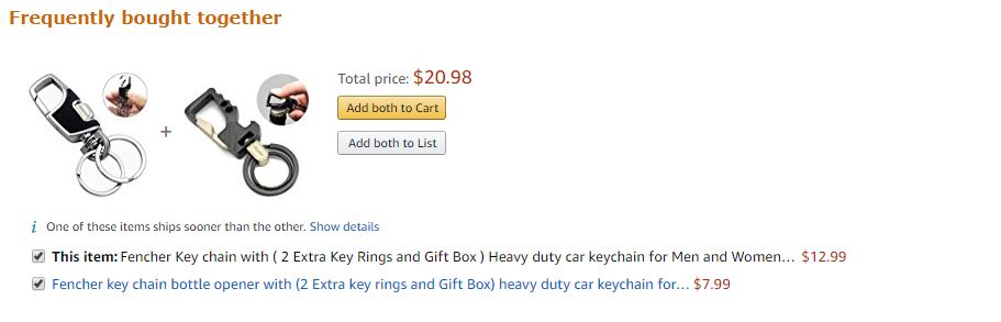 正如我们在亚马逊产品页面分析(技巧 4)中提到的,只要有可能,亚马逊就会用追加销售和交叉销售来做营销。比如这个订单详情页中他们通过显示以下模块来完成:
