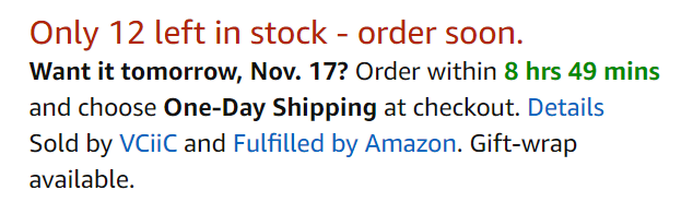 使用亚马逊产品页面中的 5 个转化元素来推动访问者立即购买。亚马逊使用了社群证明、折扣、急迫性和稀缺性、一键购买按钮、追加销售和交叉销售,以及页面上的智能栏。