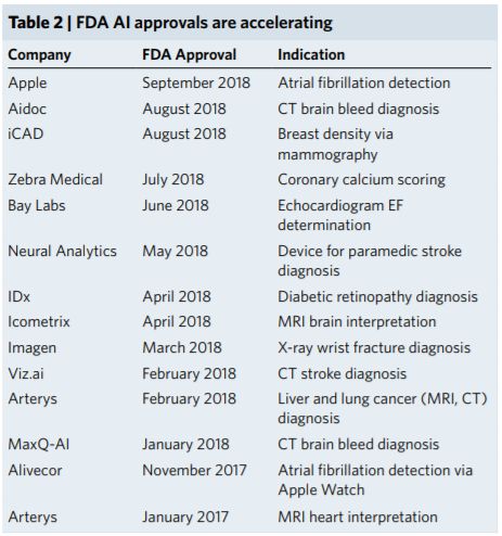 表 2:美国食品药品监督管理局(FDA)正在加速审批 AI