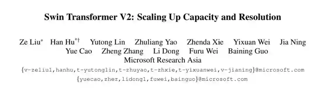 SwinTransformer重磅升级 !MSRA提出SwinV2,朝着更大容量、更高分辨率的更大模型出发,在多个基准数据集(包含ImageNet分类、COCO检测、ADE20K语义分割以及Kinetics-400动作分类)上取得新记录。针对SwinV1在更大模型方面存在的几点问题,提出了后规范化技术、对数空间连续位置偏置技术、大幅降低GPU占用的实现等得到了具有超高性能的SwinV2,刷新了多个基准数据集的指标。