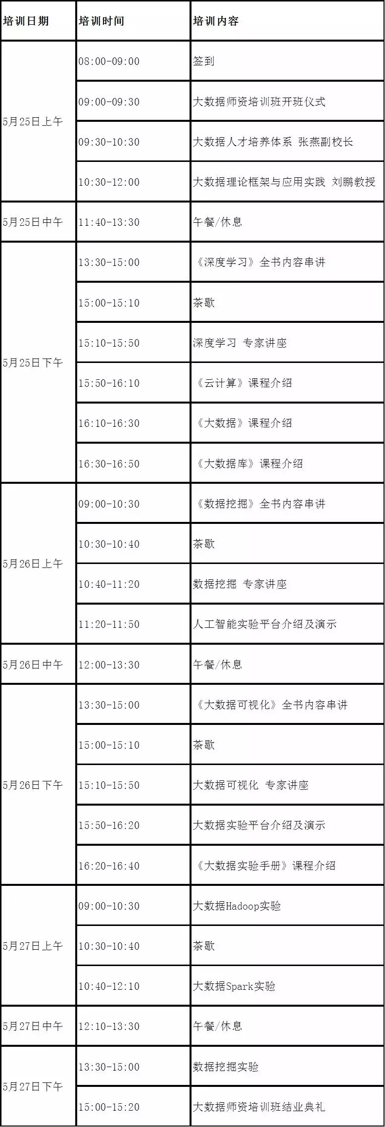 4.本次参加培训班的老师,将有机会免费获赠《深度学习》、《数据挖掘》和《大数据可视化》三本教材。