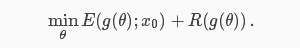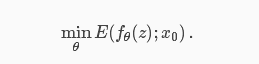 在实际应用中,g显著地改变了如何利用最优化方法搜索图像空间。除此之外,通过选择一个“好的”(可能是内射的)映射g,我们可以去除先验项。我们将g(θ)定义为fθ(z),其中f是深度卷积神经网络,参数θ和z是一个固定的输入,从而生成公式: