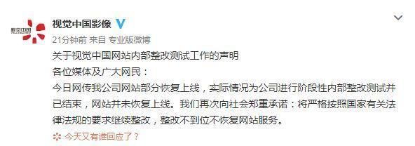 1、视觉中国网站部分恢复上线?官方回应:并未恢复